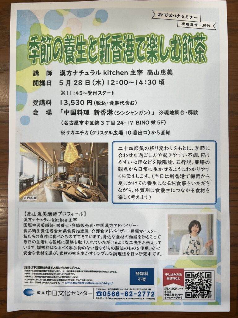 この講座では、二十四節気の考え方をもとに、季節に合わせた養生法を学びながら、